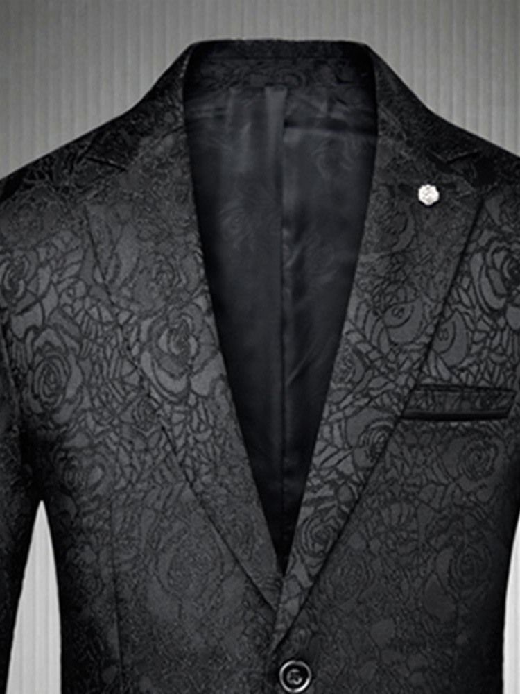 Blazer De Bola Casual Masculino Fino Com Estampa Floral De Um Botão