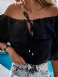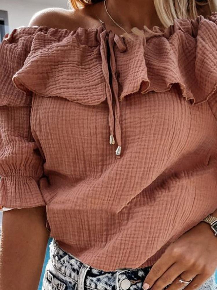 Blusa Feminina Lisa Sem Ombro Patchwork Padrão Meia Manga