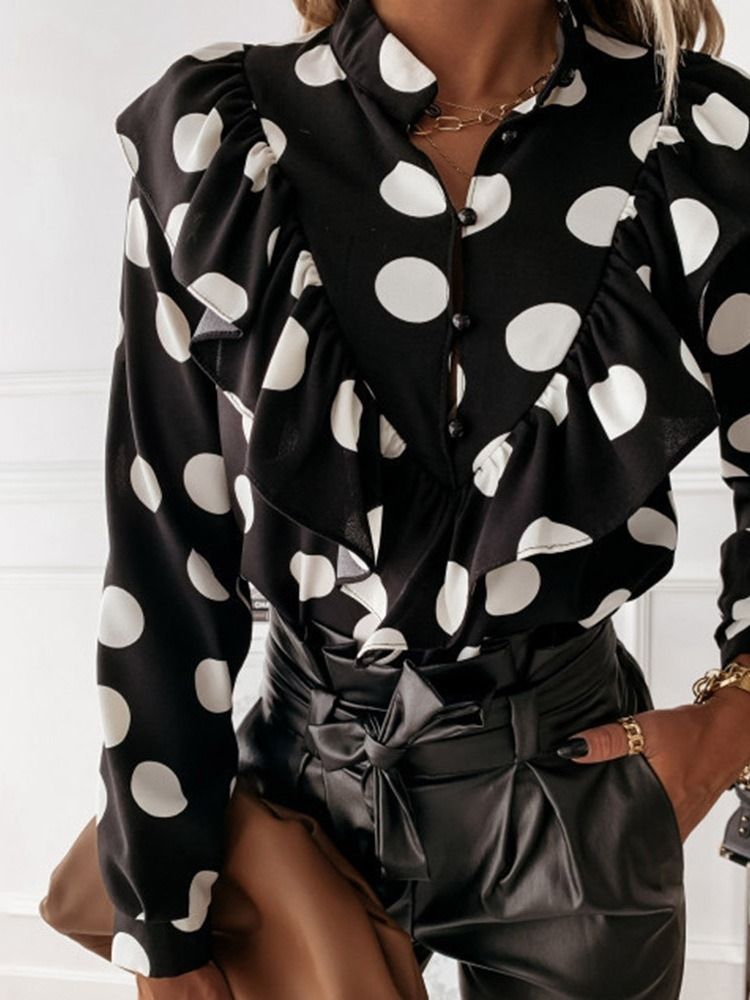 Bolinhas Femininas Falbala Blusa Feminina De Manga Comprida Padrão
