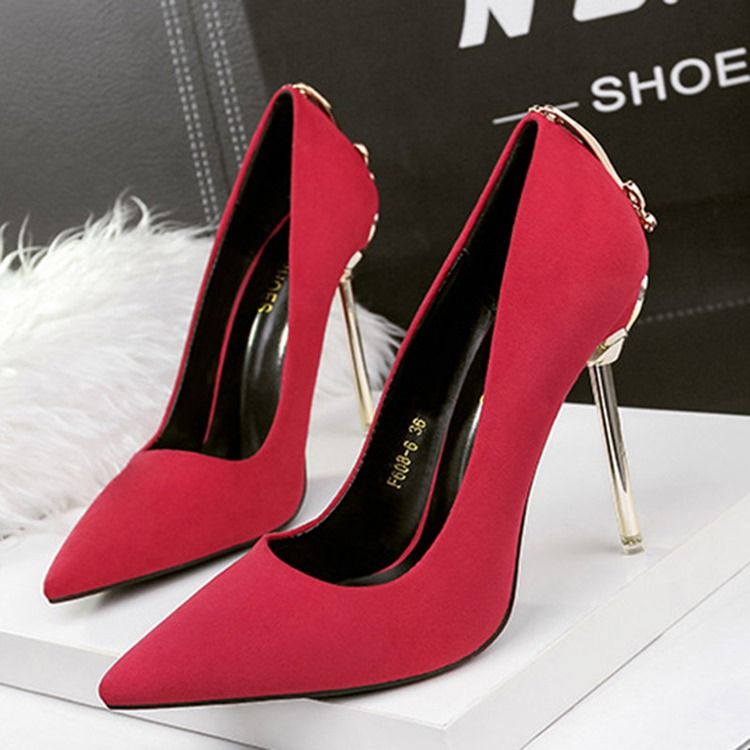 Bombas Femininas De Salto Agulha Com Dedo Do Pé Liso Pontiagudo De Lantejoulas