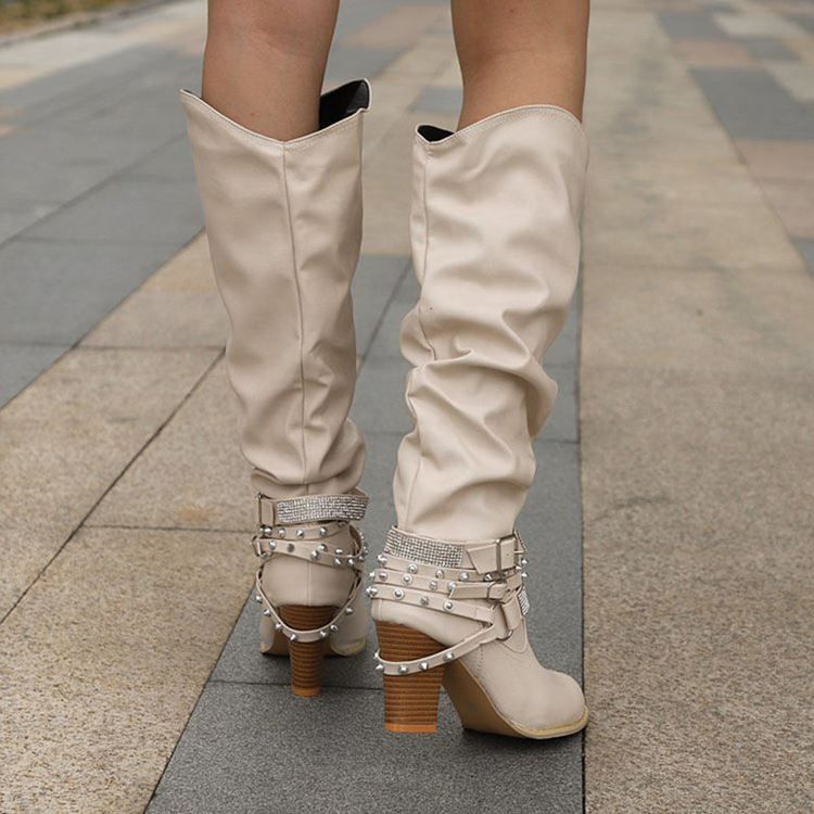 Botas Casuais Femininas De Salto Largo E Calcanhar