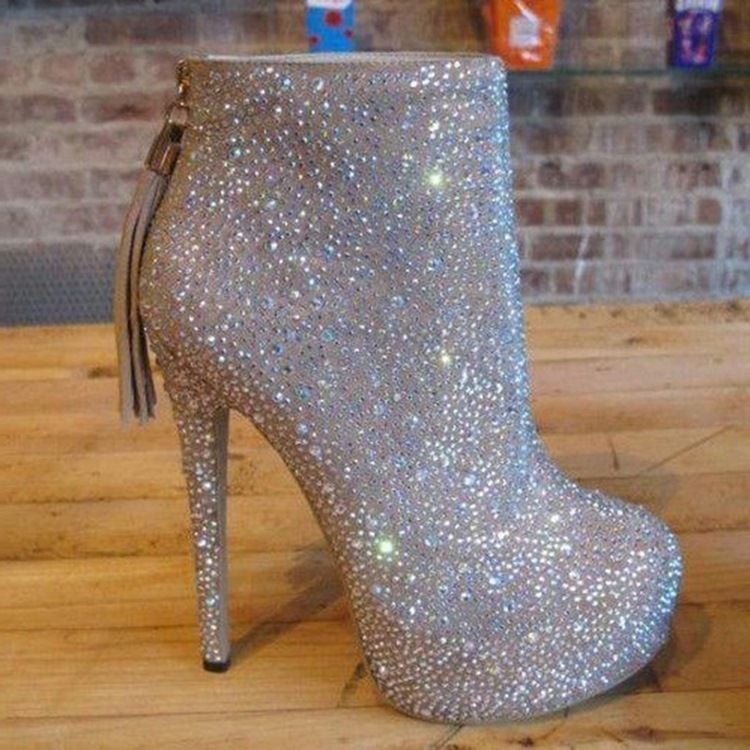 Botas De Salto Alto Com Plataforma De Strass Feminino