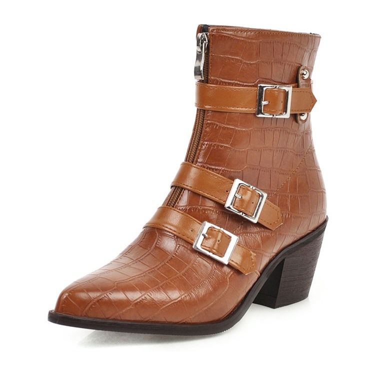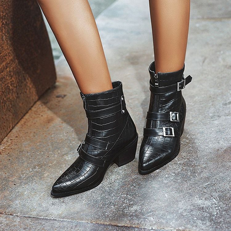 Botas De Tornozelo Femininas Com Zíper Frontal Pontiagudo
