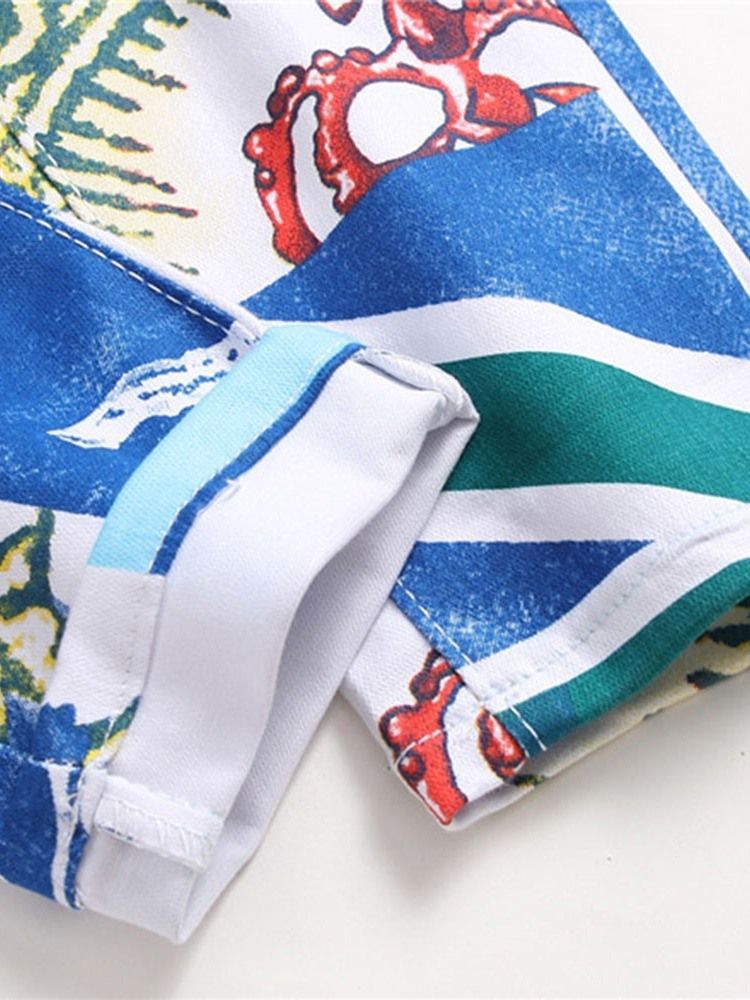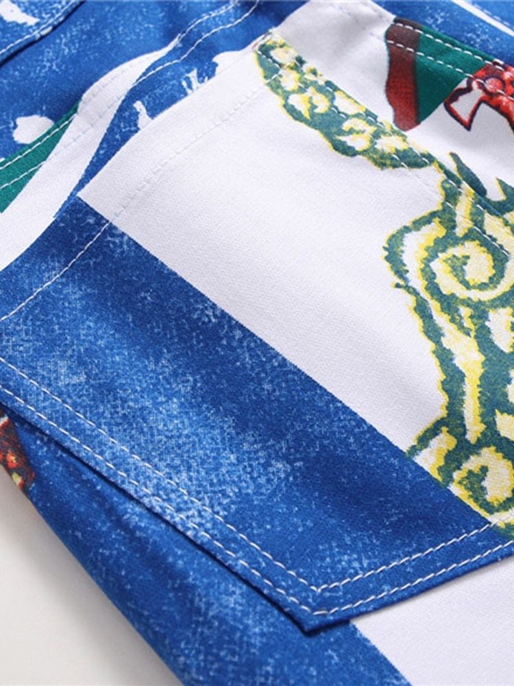 Calça Casual Europeia Com Zíper Estampado Masculino