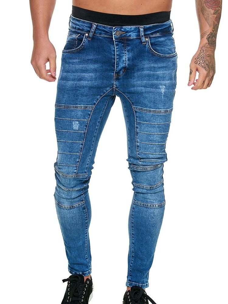 Calça Lápis Lápis Botão Calça Jeans Casual Masculina