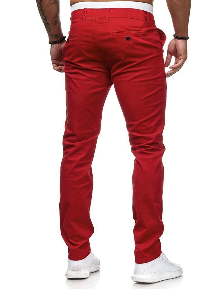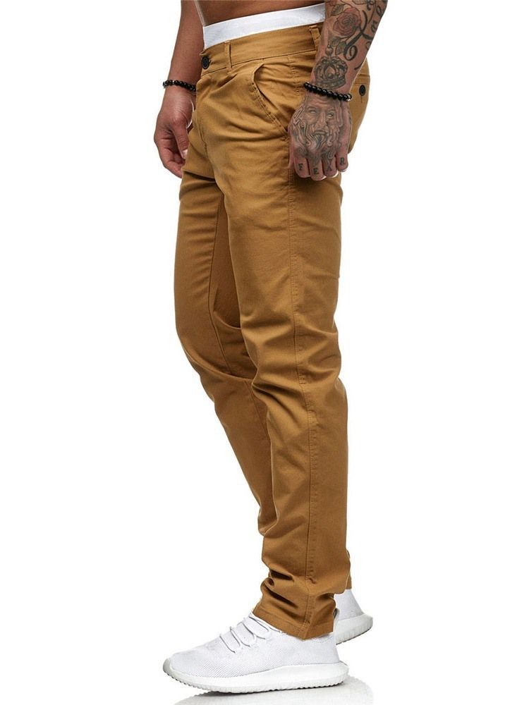 Calça Lápis Casual Masculina Com Zíper Liso Cintura Média