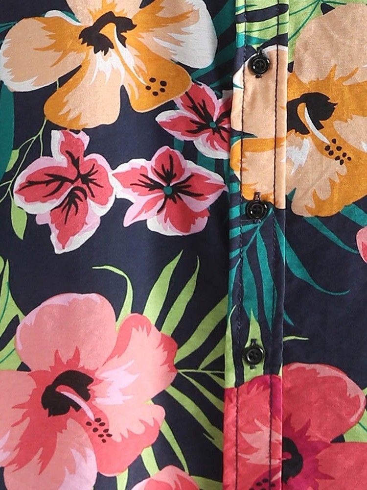 Camisa Masculina Estampada Casual Floral Lapela De Peito Único