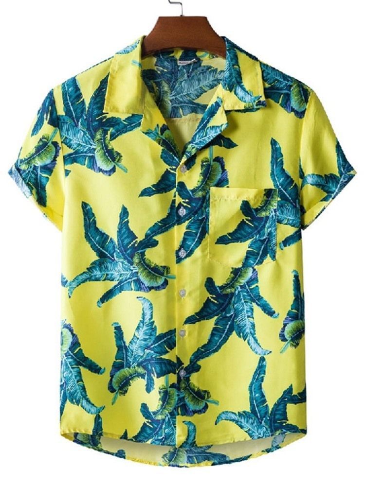 Camisa De Verão Masculina Lapela Estampa Floral Com Peito Único