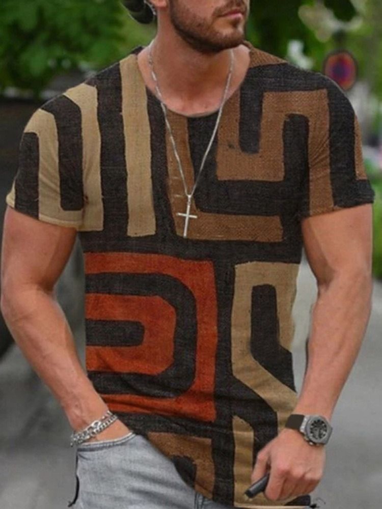 Camiseta Masculina Listrada Estampada Casual Manga Curta Solta