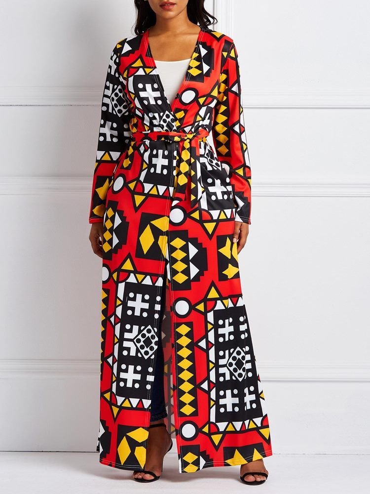 Casaco Longo Feminino Com Estampa Longa Regular De Manga Comprida