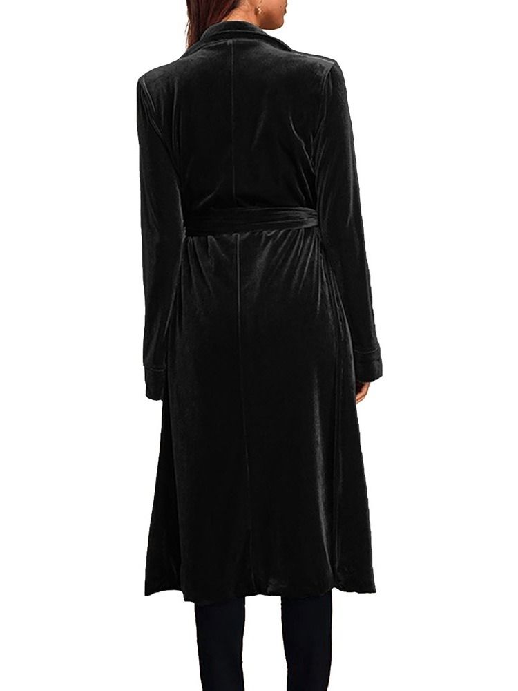Casaco Longo De Lapela Feminino Com Cinto Longo De Lapela Ocidental Regular