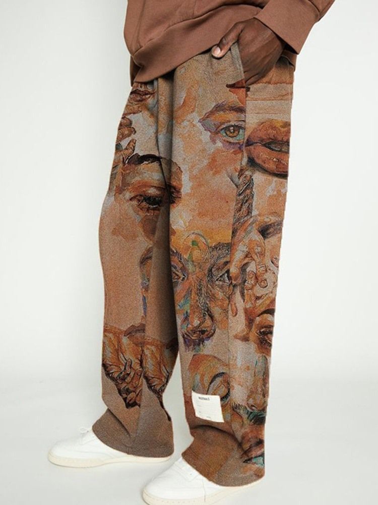 Estampa Calça Reta Animal Cintura Média Casual Masculina