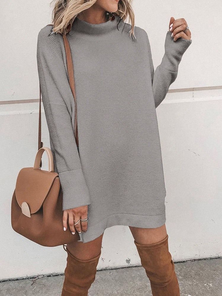 Feminino Acima Do Joelho Mangas Compridas Com Colarinho Vestido Regular De Inverno
