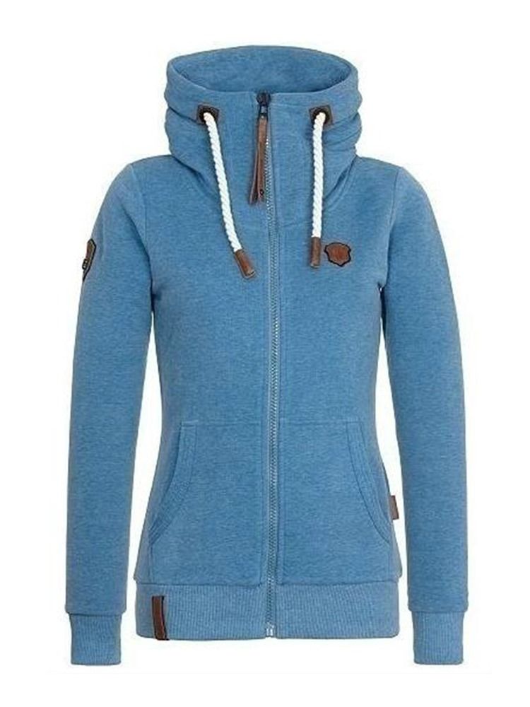 Feminino Slim Gola Alta Zipper Hoddie