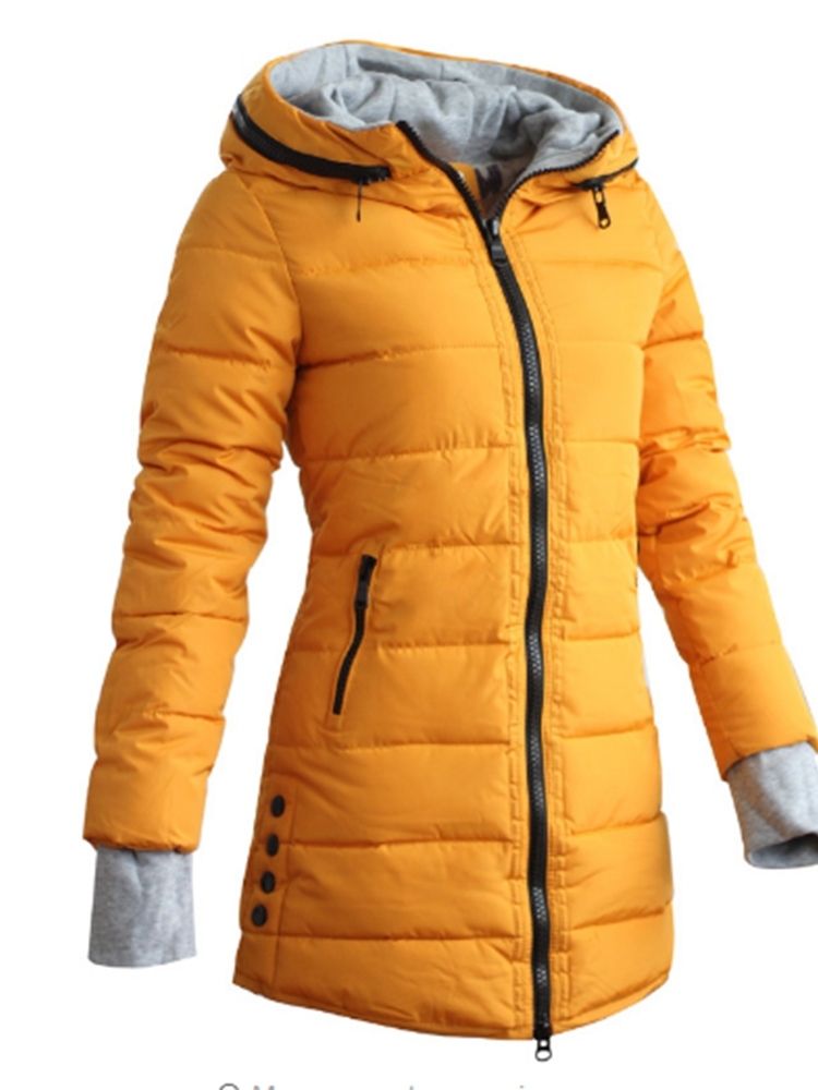 Jaqueta Acolchoada Feminina Com Bolso E Zíper De Comprimento Médio E Algodão