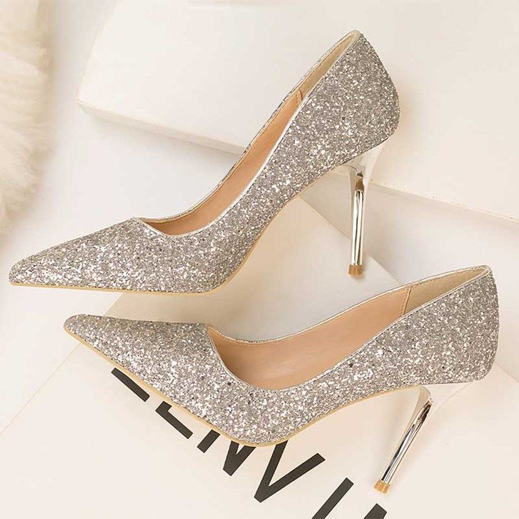 Lantejoulas Slip-on Toe Pontudo Salto Agulha Feminino