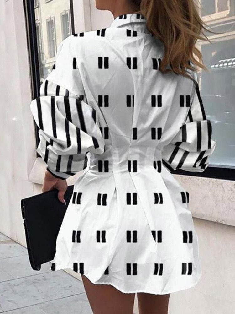 Lapela Feminina Com Manga Três Quartos Acima Do Joelho Bodycon Vestido Geométrico