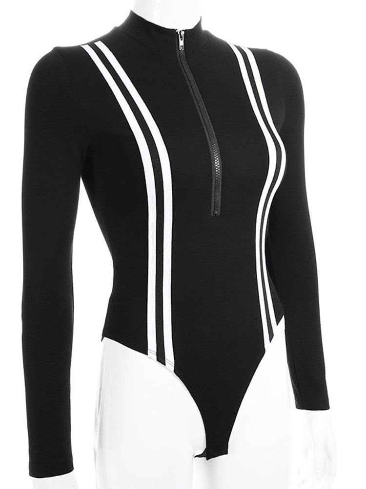 Macacão Feminino Sexy Stripe Zipper Skinny