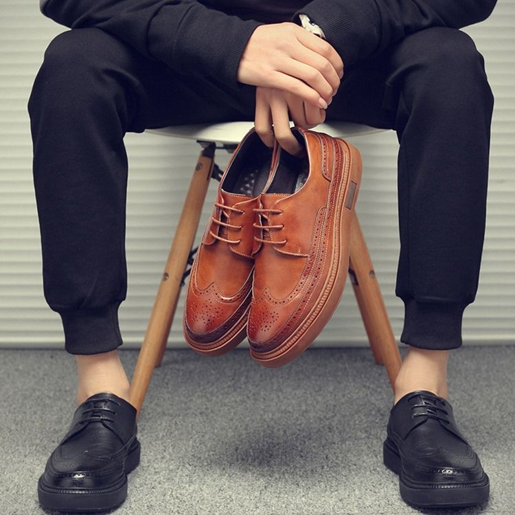 Pu Oco Redondo Dedo Do Pé Redondo Com Cordões Sapatos Confortáveis Masculinos