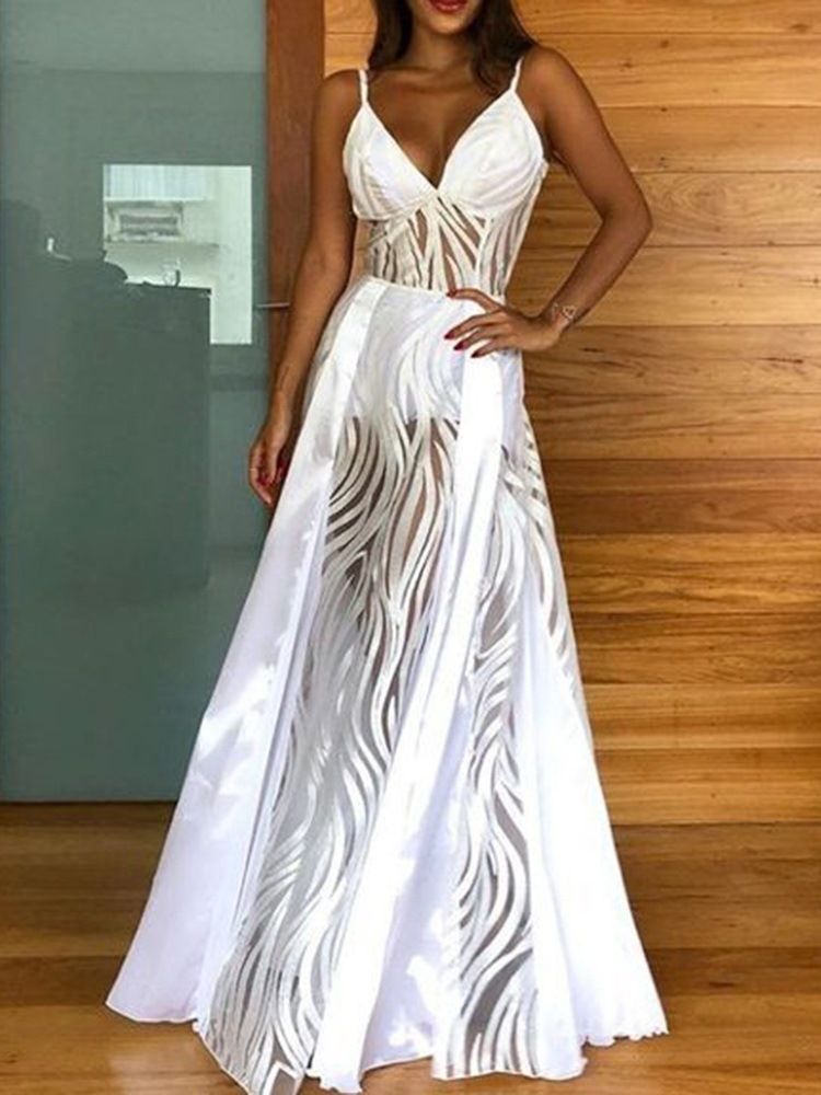 Pulôver Transparente Sem Mangas Com Decote Em V Vestido Simples Feminino