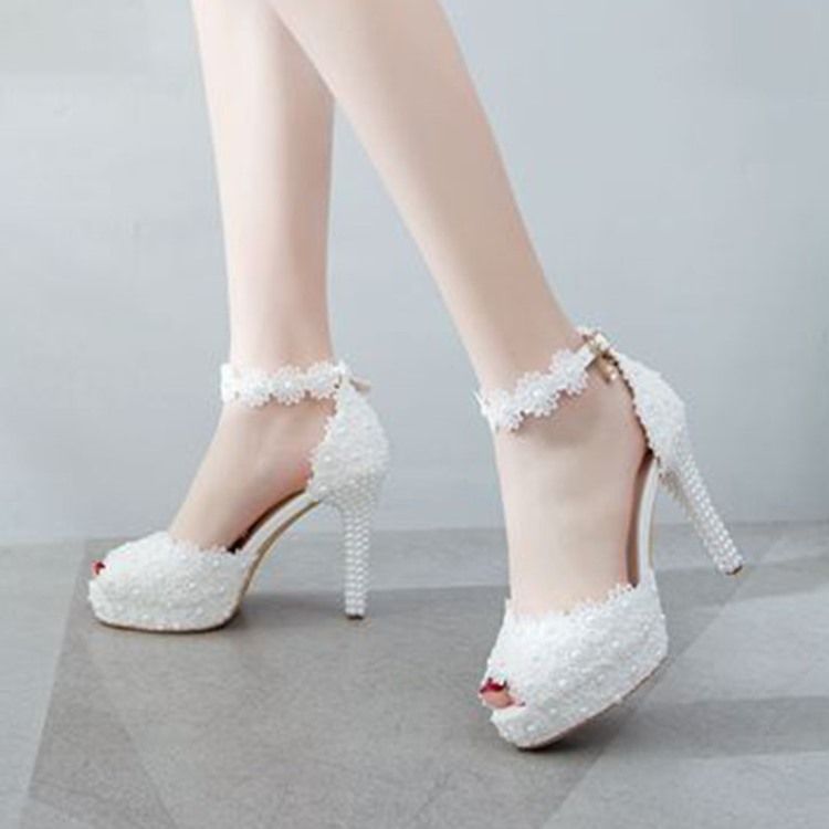 Salto Feminino Cobrindo Peep Toe Sandálias De Aplicação De Fivela Estilo Linha