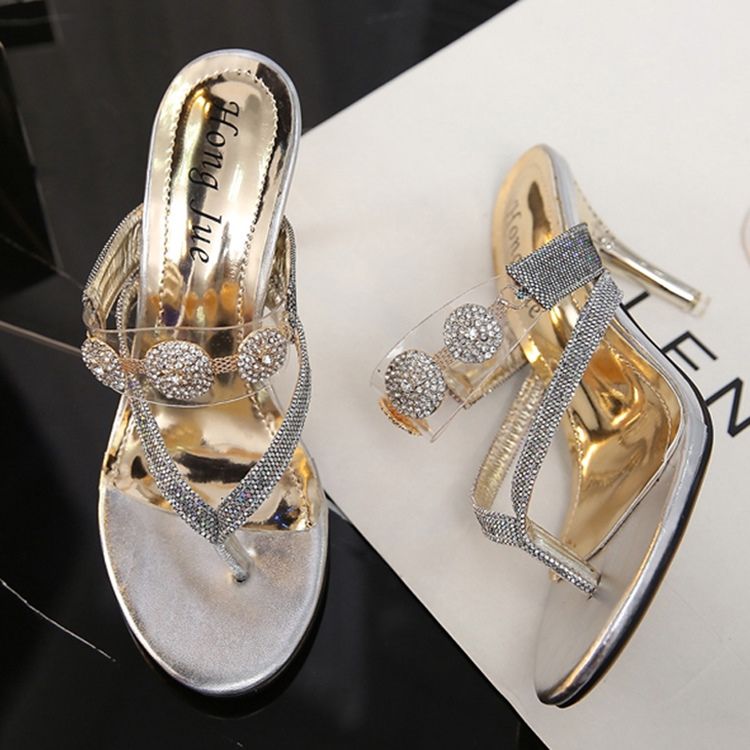 Sapatos Femininos Com Strass Lantejoulas Tanga E Salto Agulha