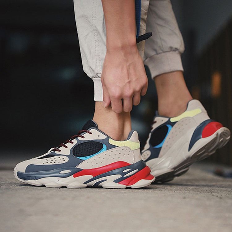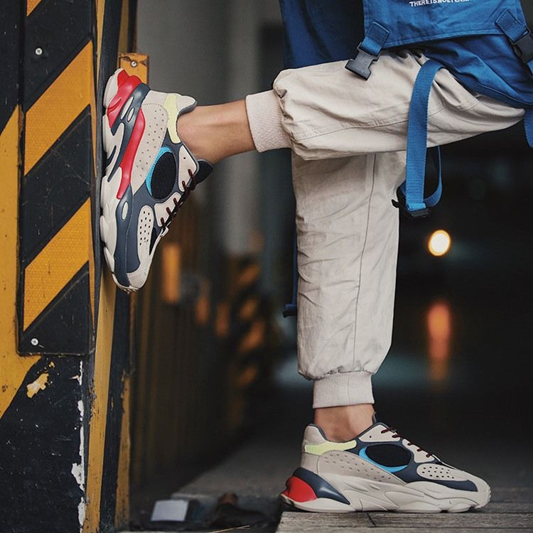 Tênis Masculino Com Malha De Cor Bloco Redondo Dedo Com Cordões