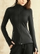 Thumbholes Femininos Com Zíper Sólido Anti-suor Tops Esportivos De Manga Comprida