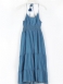 Vestido Feminino De Alça Espaguete Com Borla E Patchwork Maxi