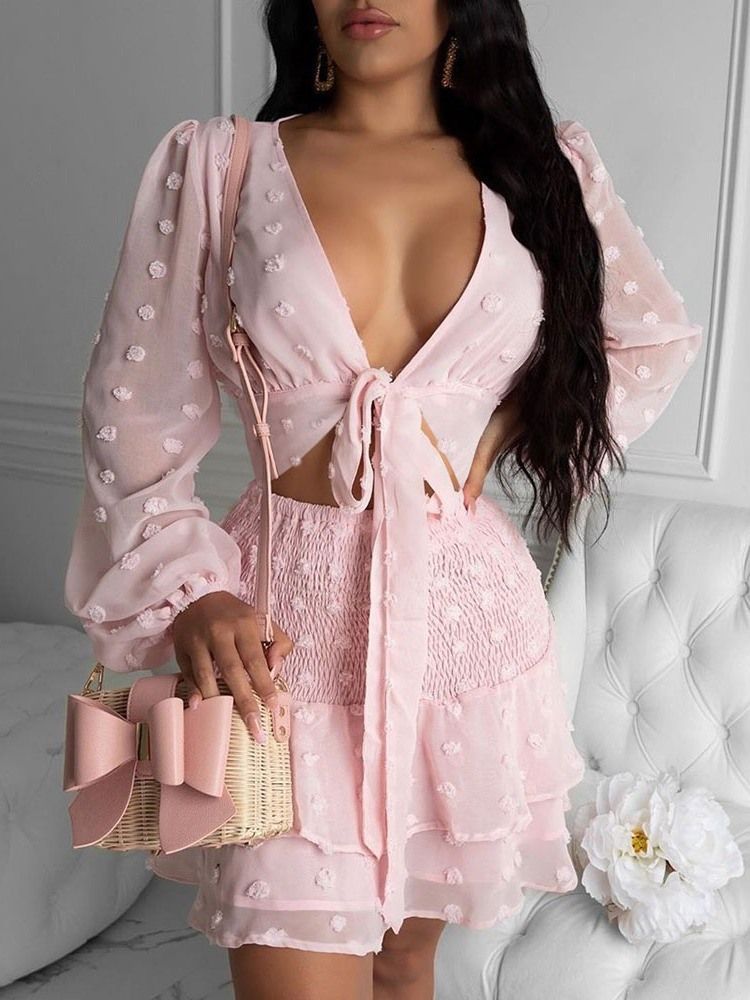 Vestido Feminino Com Decote Em V De Manga Comprida Pulôver Plissado De Outono