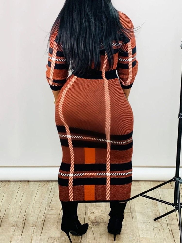 Vestido Feminino Com Gola Alta Manga Comprida Estampada Na Cintura Média