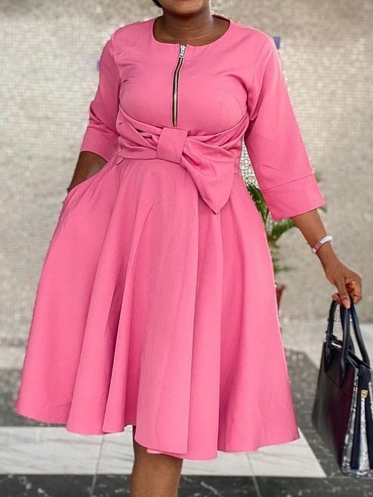 Vestido Feminino Com Zíper Com Manga Três Quartos Na Altura Do Joelho