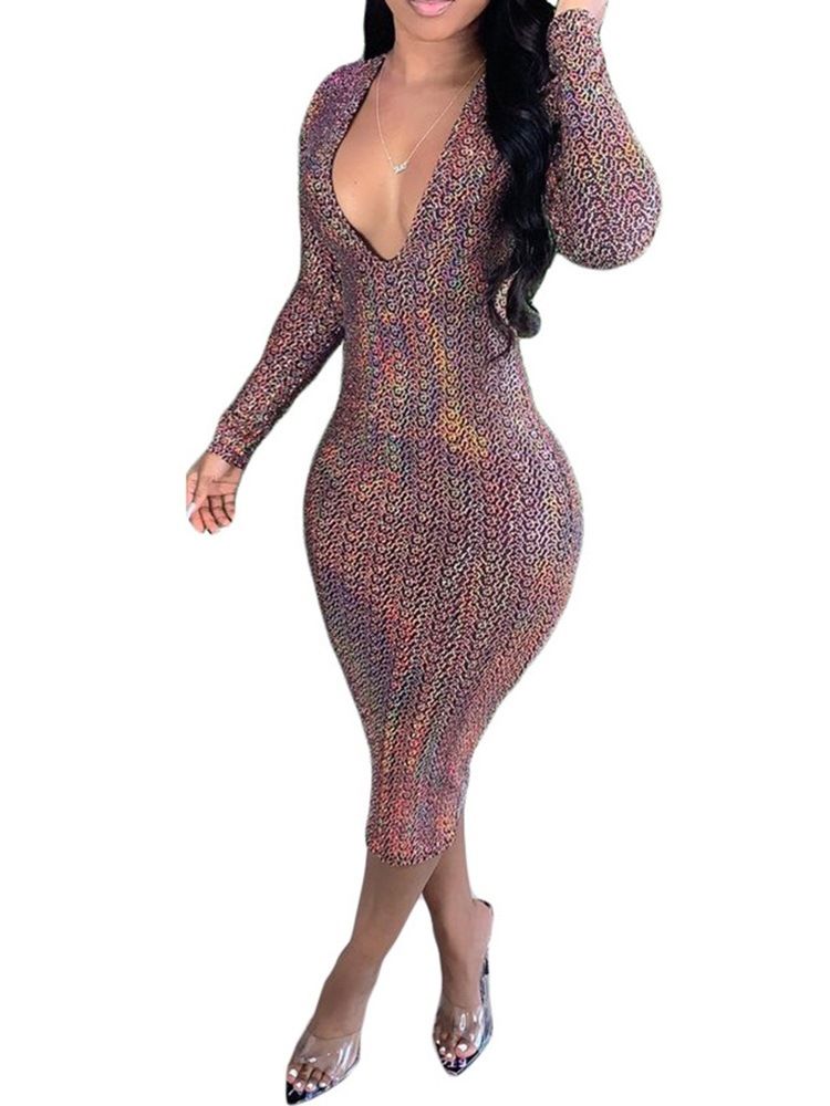 Vestido Feminino De Lantejoulas Com Decote Em V Colorido