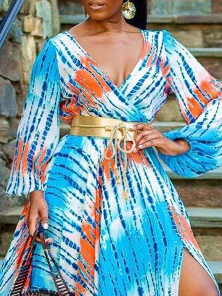 Vestido Feminino De Manga Comprida Até O Chão Com Decote Em V Sweet A-line