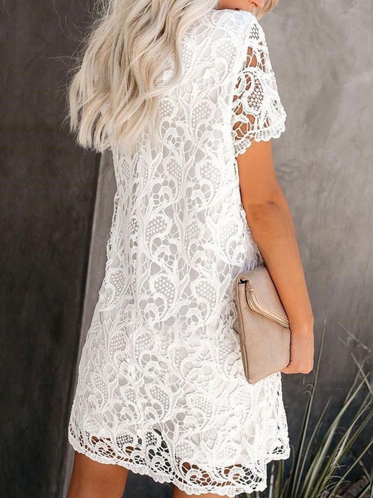Vestido Feminino Manga Curta Acima Do Joelho Redondo Pescoço