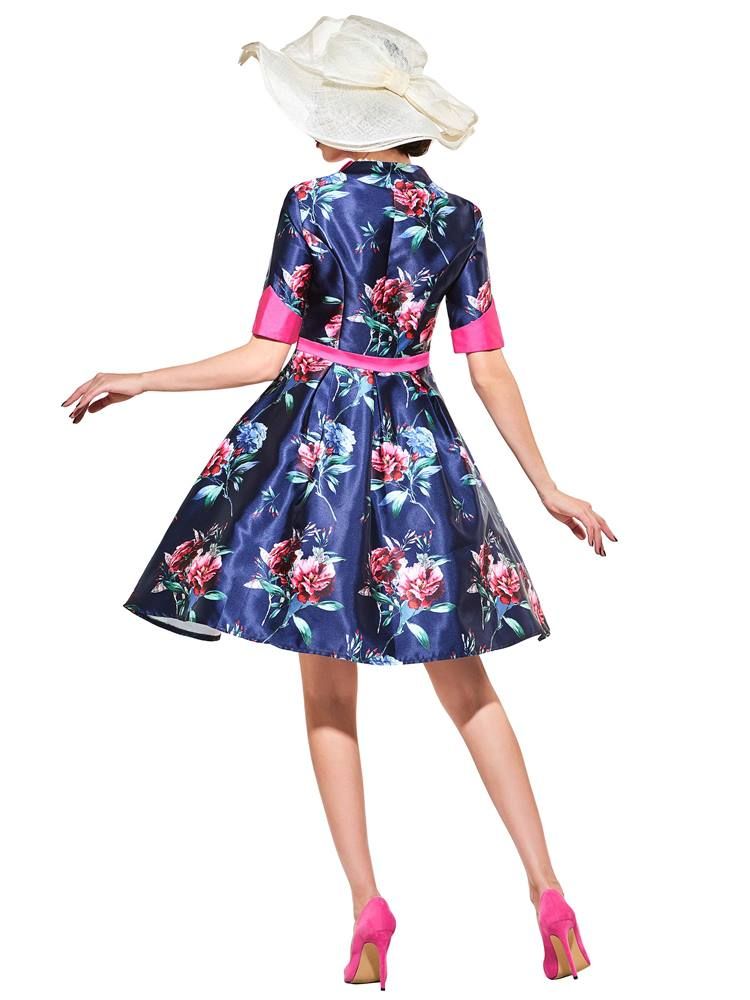 Vestido Feminino Vintage Meia Manga Lapela Linha A