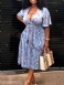 Vestido Floral Feminino Com Decote Em V E Meia Manga Meia Panturrilha
