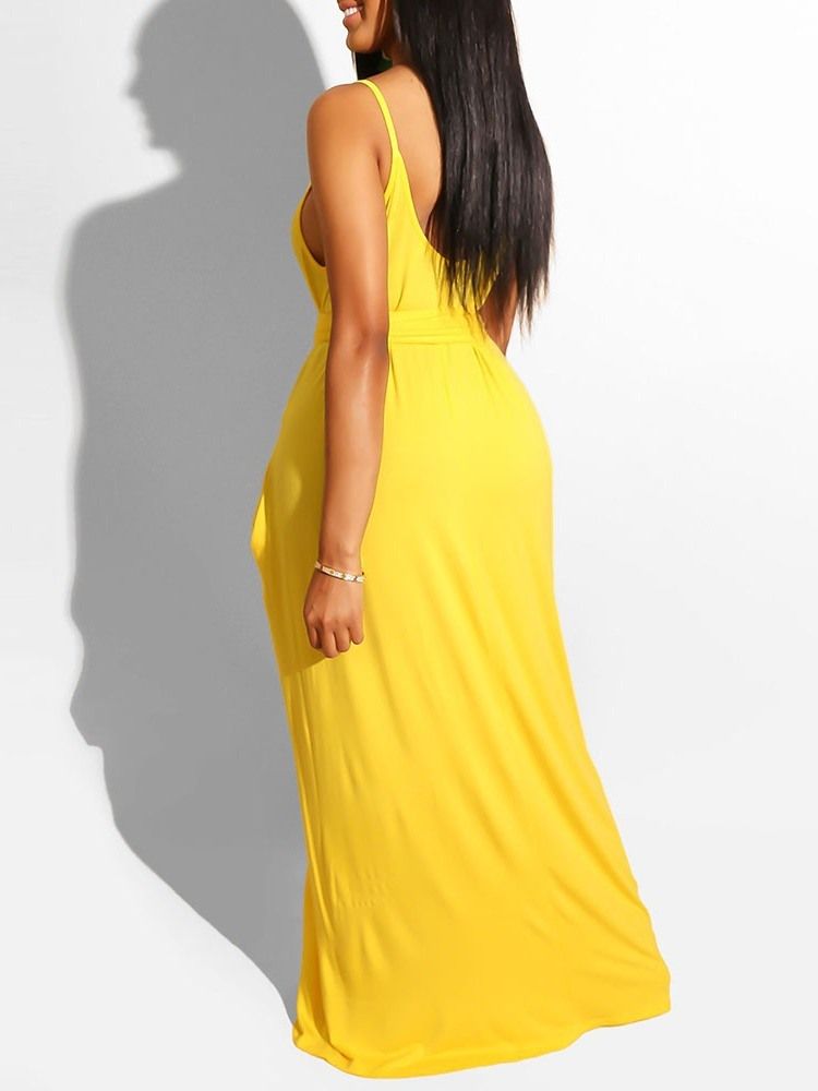 Vestido Liso Feminino Sem Mangas Até O Chão Em Patchwork